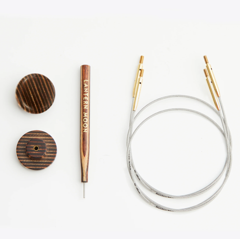 Đây là dòng dây nối nằm trong Bộ sưu tập Lantern Moon của Knitpro. Mạnh mẽ và linh hoạt - được làm bằng thép không gỉ loại tốt nhất. Đặc biệt có cơ chế xoay 360 độ tại đầu nối dây, đảm bảo sự trơn mượt trong lúc bạn đan thành phẩm. Đầu nối bằng đồng nguyên khối mạ 24K có ren để dễ dàng gắn vào đầu kim. Chúng được làm bằng thép không gỉ bọc nylon, dễ dàng tháo cuộn và luôn thoải mái, không bị xoắn. Được cung cấp thêm các đầu bịt dây đan chờ bằng gỗ và khóa vặn mấu nối được sử dụng để siết chặt các đầu vào cáp.