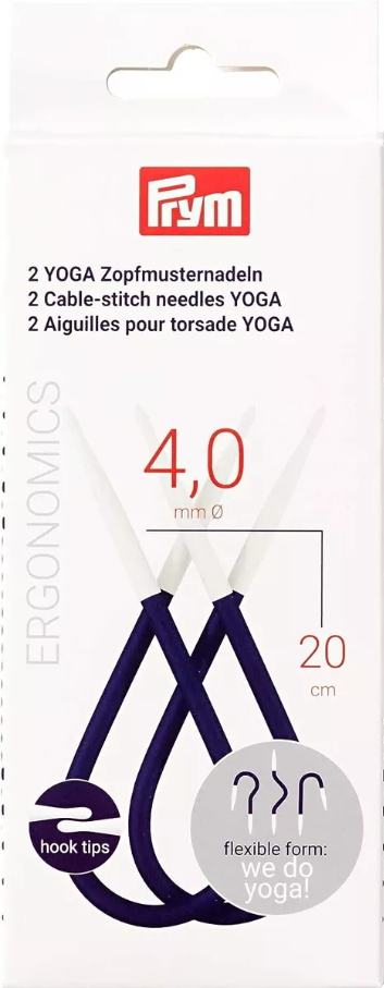 The innovative prym.ergonomics Yoga cable stitch needle fulfils the promise of its name. The core of the needle: a shaft which bends flexibly into any shape you require. A sturdy wire core ensures that the required shape - hook, U or corrugated shape - stays in place. Therefore this needle simultaneously offers a variety of practical functions - cable-stitch needle, auxiliary needle, stitch holder, stitch marker. When not in use, the Yoga needle can be placed comfortably around the wrist. The combination of two materials offers a further highlight, because the soft, matt synthetic material of the needle shaft with its "grip" ensures that open stitches are secured, while the smooth, drop-shaped ends of the needle pick up the yarn with ease and so ensure that your knitting is a relaxing past-time. Dropped a stitch? The Yoga cab le stitch needle makes it simple to knit dropped stitches back to the top of your work!