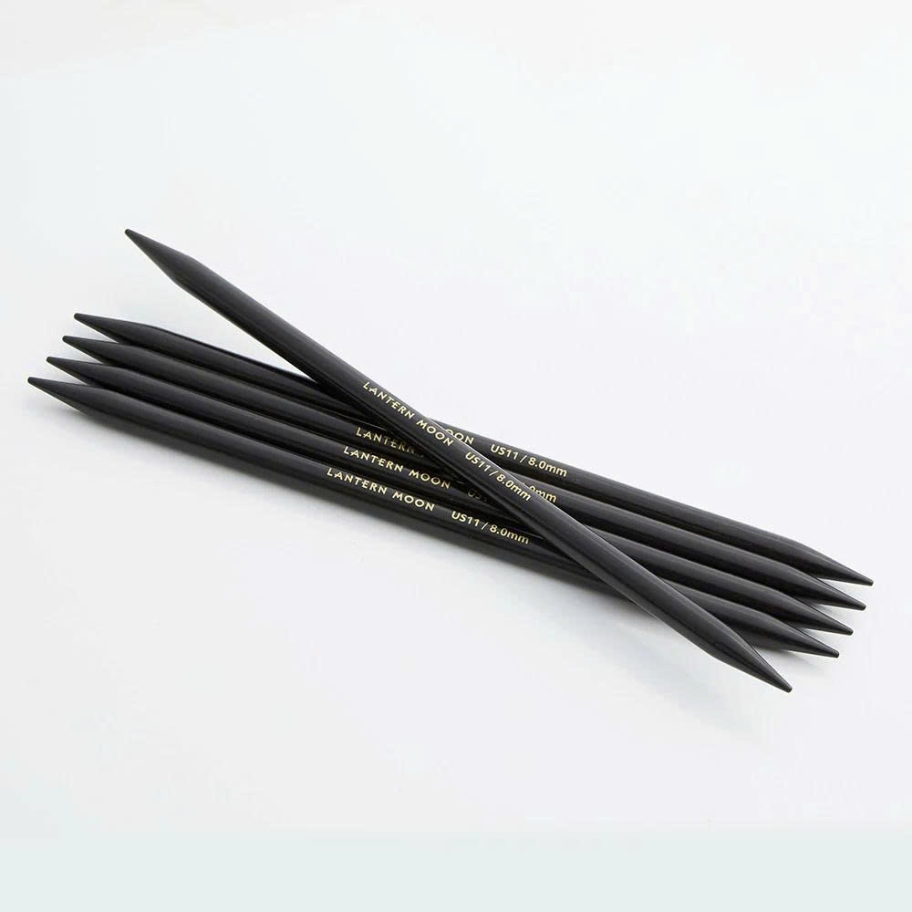 Like all Lantern Moon knitting needles, the Lantern Moon double point knitting needles are made of ebony, one of the world’s most valuable woods. The liquid silk finish is warm and easy on the hand and ensures a smooth, no-snag stitch glide. The transition from one double point needle to the next is smoothly made thanks to the even surface of the needles and the perfectly shaped tips that work well with every type of yarn.