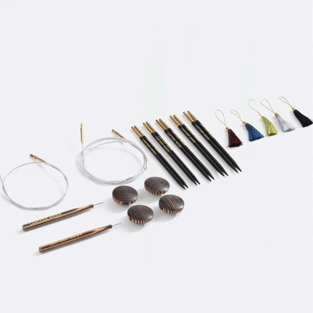 Với 5 cặp đầu kim rời bằng gỗ mun, một trong những loại gỗ quý và có giá trị nhất thế giới, có lớp phủ lụa lỏng đảm bảo trải nghiệm đan, êm ái đưa kim trên các loại len sợi. Kim có chiều dài 11cm, cùng các kích thước đầu kim khác nhau và dây nối riêng, giúp bạn ứng biến kinh hoạt cho các dự án đan của bản thân. Bộ kim phù hợp với các dự án đan thân, áo,...