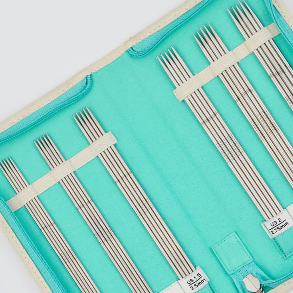 For knitters who prefer double-pointed needles for their knit-in-the-round projects, the Gracious Set is perfect! The curated set equips you with everything you need. Featuring 6 expertly crafted double-pointed needles in sizes US 0 (2.0mm) to US 3 (3.25mm), the stainless steel tips ensure flawless stitch definition, even with the most intricate lace patterns.