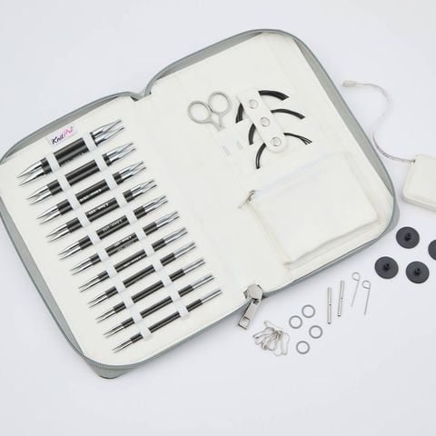 Trải nghiệm sự chuyển tiếp mượt mà của sợi giúp giảm tình trạng vướng víu và mệt mỏi khi đan. Bộ sản phẩm đẹp mắt và tiện dụng cho tất cả các dự án đan của bạn được đóng gói trong hộp có khóa kéo màu xám để dễ dàng cất giữ và di chuyển.