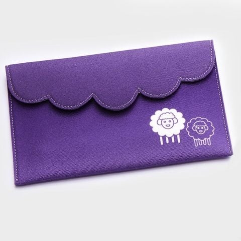 The set contains 10 sizes of Symfonie wood crochet hooks (3.0-3.5, 4.0-4.5, 5.0-5.5, 6.0-6.5, 7.0-8.0mm) packed in a plush purple fabric case. The case has a beautiful scalloped edge and sheep icons that add to the charm of the wonderful crochet set.