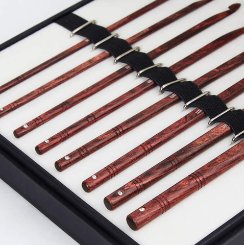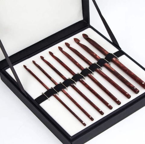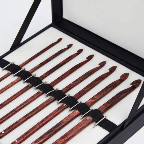 Set kim móc Rose là món quà lý tưởng dành cho Nghệ sĩ đan móc được đóng gói trong một bộ hộp có chữ lồng đẹp mắt gồm 8 size kim móc 1 đầu Symfonie Rose.