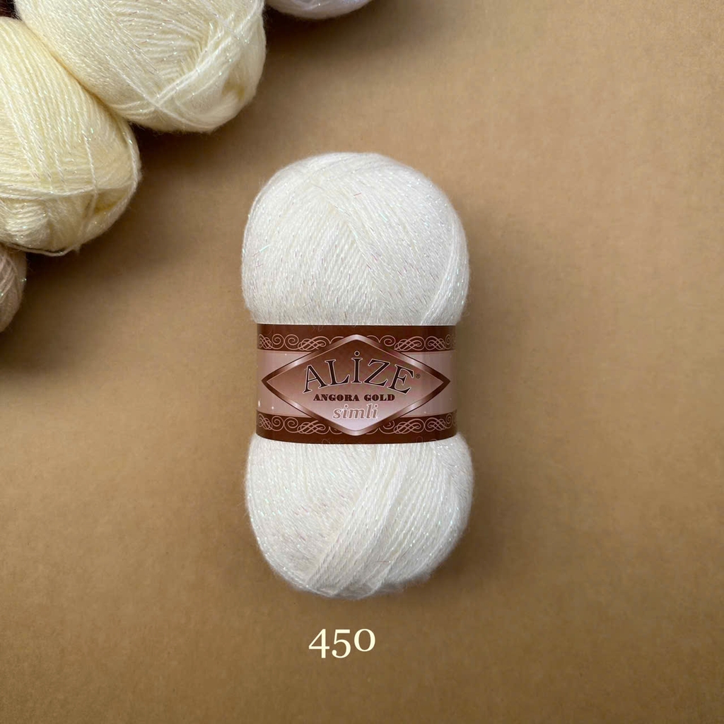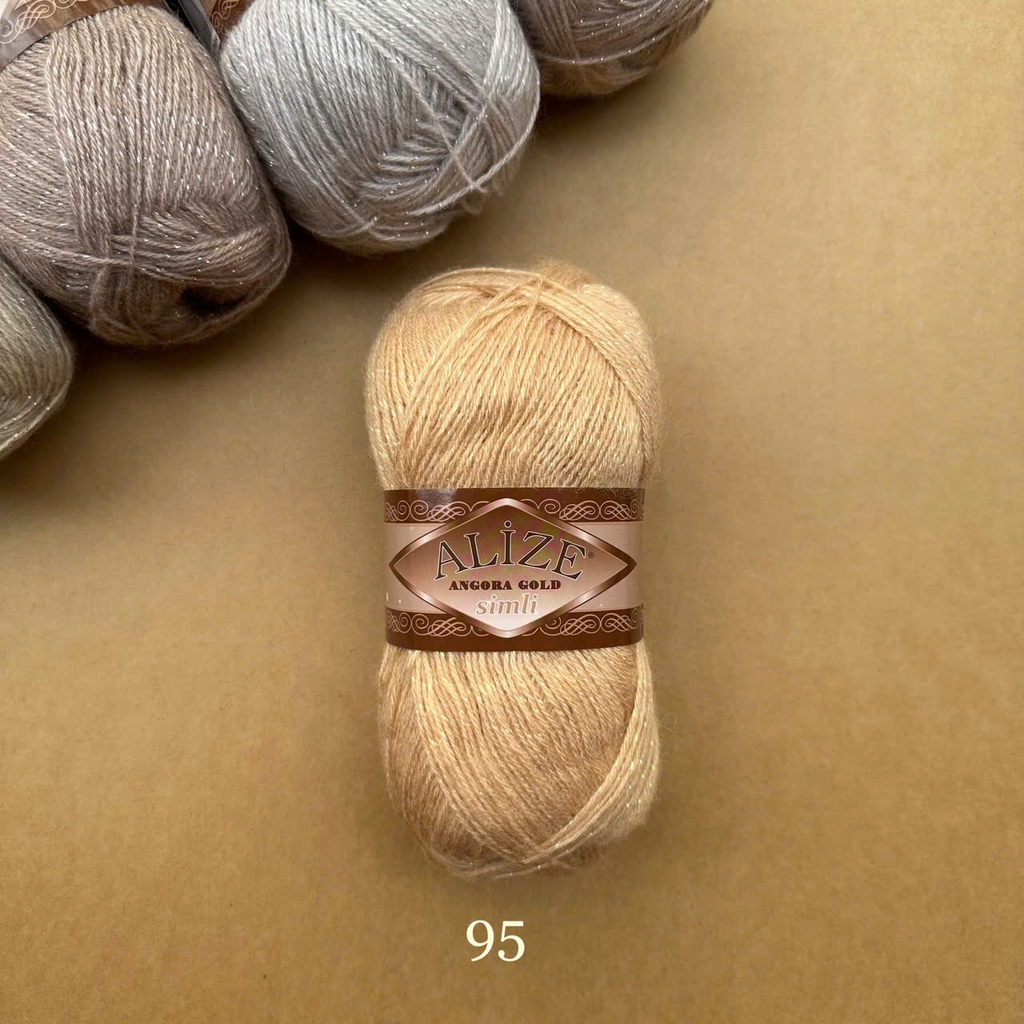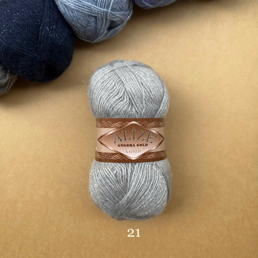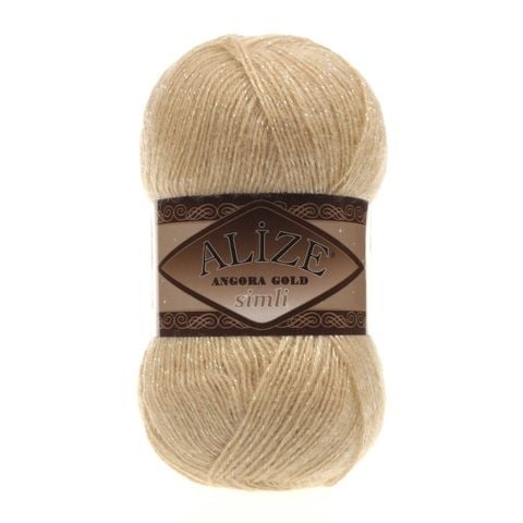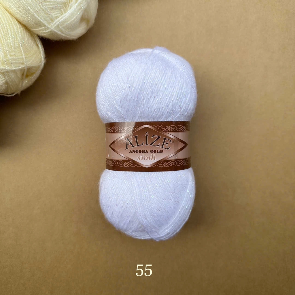 Len Angora Gold Simli có chất liệu gồm 20% Wool và 75% Acrylic giúp giữ ấm tốt cho ngày trời se lạnh. Thêm vào đó, Alize Yarns còn kết hợp cùng sợi kim tuyến làm tăng phần lấp lánh hơn cho cuộn len cũng như thành phẩm. Len Angora Gold Simli được sử dụng cho các dự án đan móc áo sweater, áo khoác, khăn tam giác, khăn quàng cổ,...