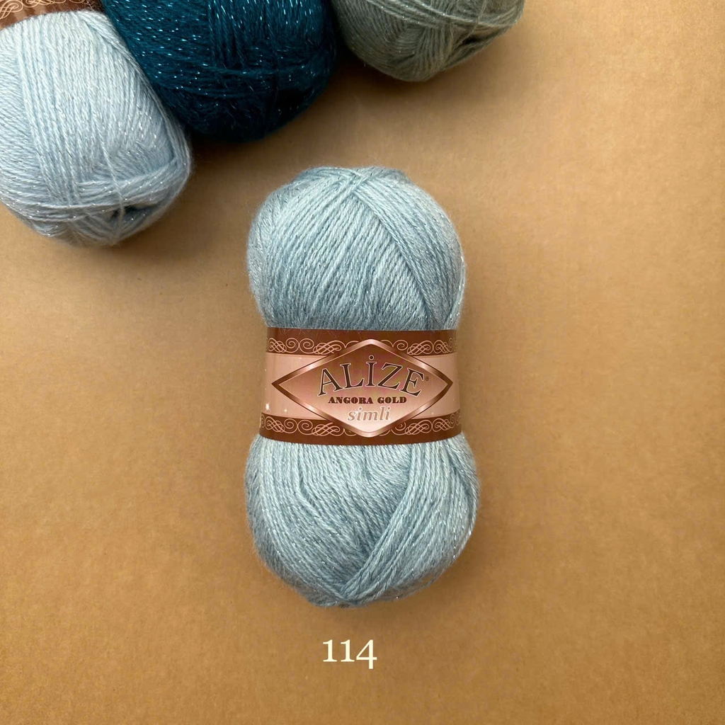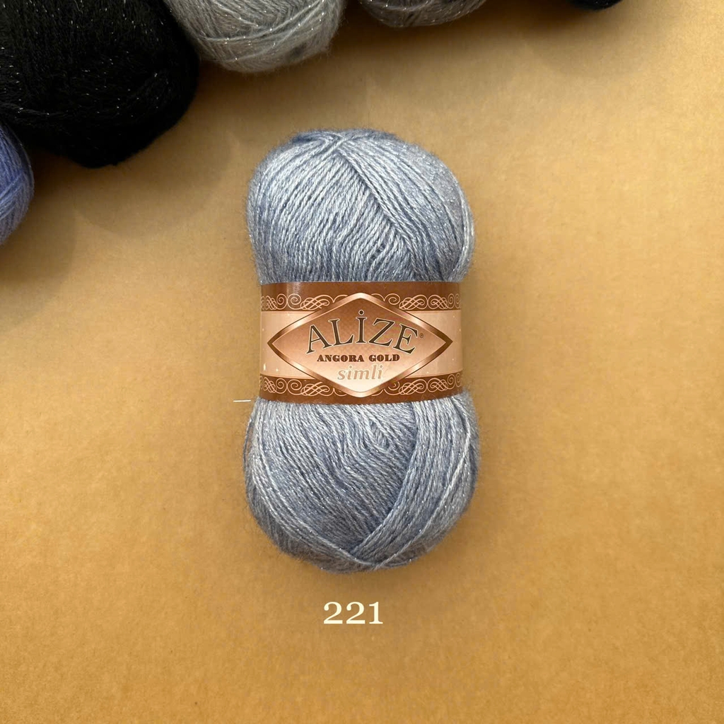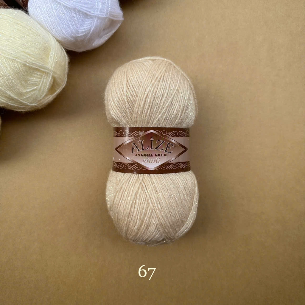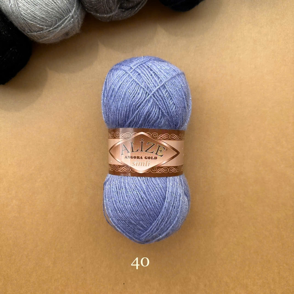 Len Angora Gold Simli có chất liệu gồm 20% Wool và 75% Acrylic giúp giữ ấm tốt cho ngày trời se lạnh. Thêm vào đó, Alize Yarns còn kết hợp cùng sợi kim tuyến làm tăng phần lấp lánh hơn cho cuộn len cũng như thành phẩm. Len Angora Gold Simli được sử dụng cho các dự án đan móc áo sweater, áo khoác, khăn tam giác, khăn quàng cổ,...