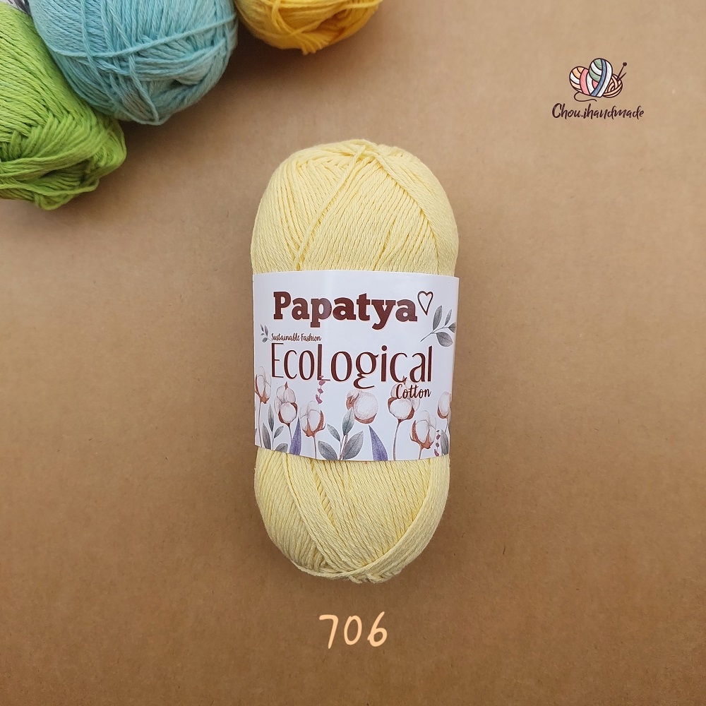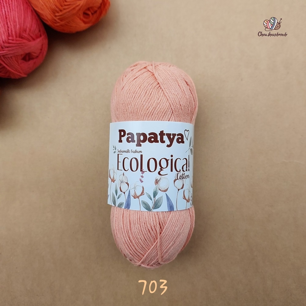 Papatya Ecological là dòng len thân thiện với môi trường, dành cho những sản phẩm thời trang bền vững. Sợi vô cùng mềm, bảng màu thiên tông Pastels, nhẹ nhàng, thanh khiết. Papatya Ecological là sự lựa chọn lý tưởng cho các dự án đan móc vỏ gối, Amigurumi và những sản phẩm dành cho mùa hè như áo, váy, áo Crop-top,…