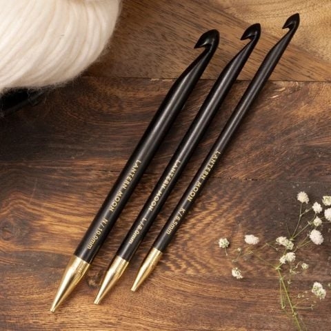 Kim móc Tunisian nằm trong bộ sưu tập Lantern Moon, đây là dòng có thể hoán đổi, kết hợp với dây nối. Đặc biệt kim được làm bằng gỗ mun, một trong những loại gỗ quý và có giá trị nhất thế giới. Cũng giống như tất cả kim móc, kim móc Tunisian có lớp phủ bằng lụa lỏng đảm bảo trải nghiệm móc và đưa kim không bị vướng víu. Sự hoàn thiện tỉ mỉ ở đầu móc đảm bảo khả năng cơ động dễ dàng và chuyển mũi móc về phía trước. Mối nối giữa dây và móc vừa khít, êm ái giúp các mũi móc di chuyển dễ dàng. Chouihandmade hiện có sẵn với nhiều kích cỡ tiêu chuẩn, kim móc Tunisian có thể hoán đổi cho nhau cùng với nhiều độ dài dây khác nhau.