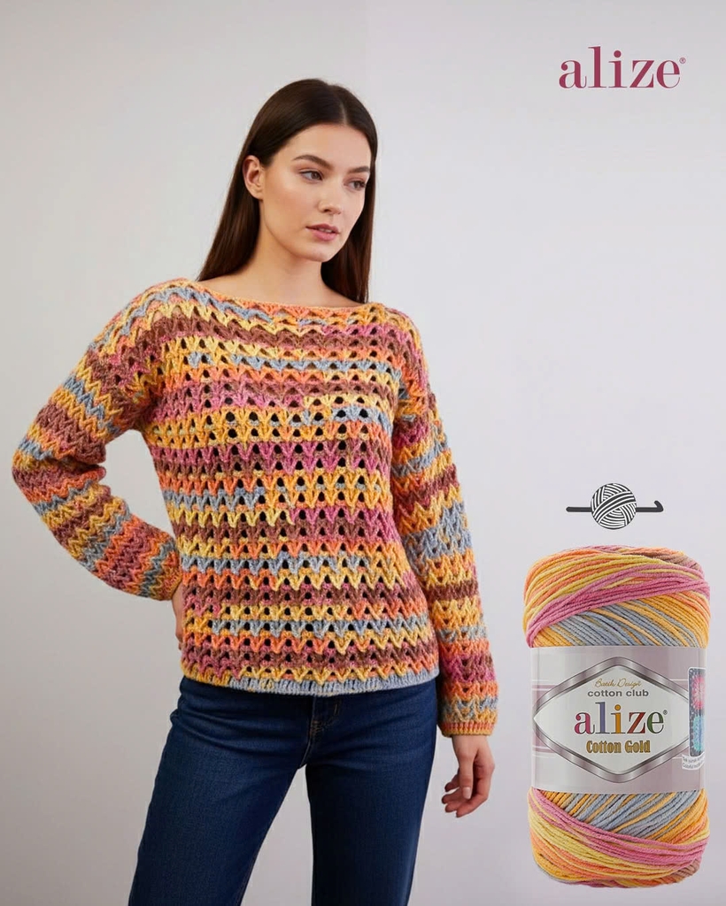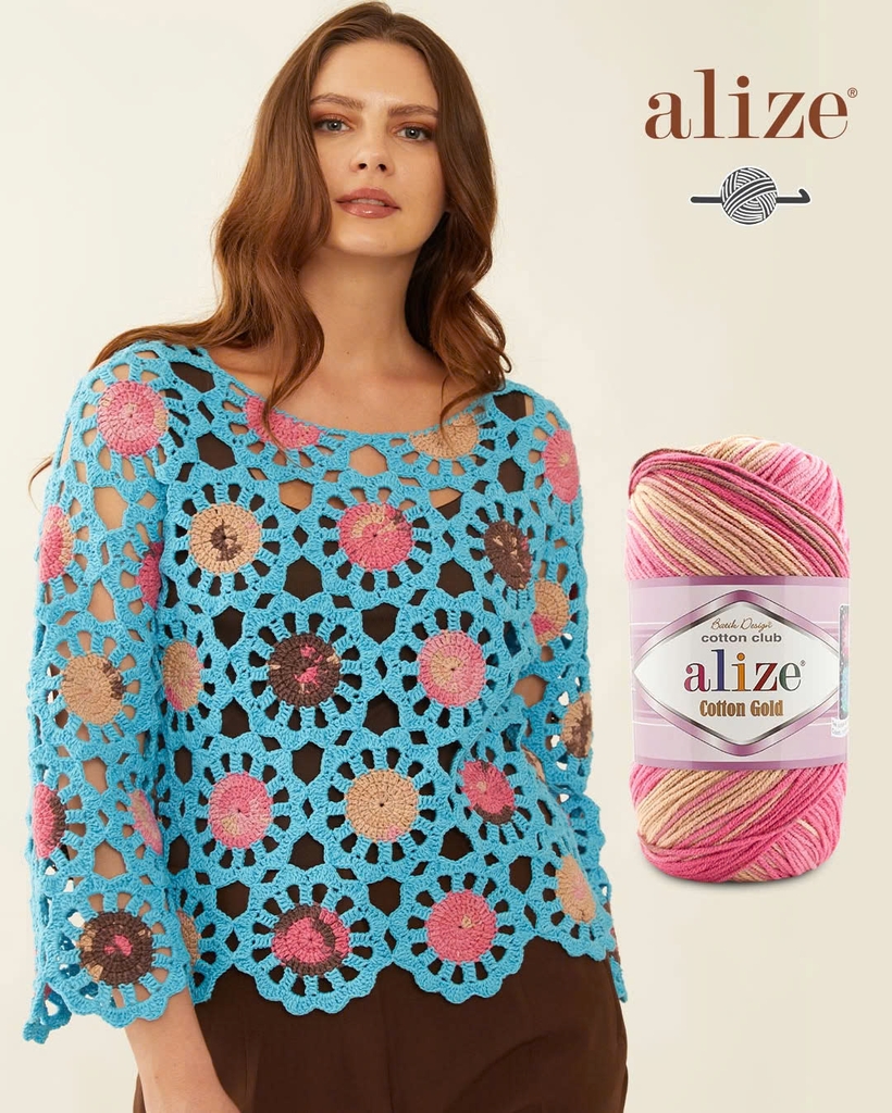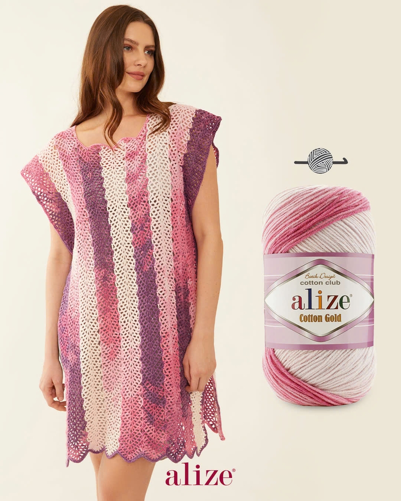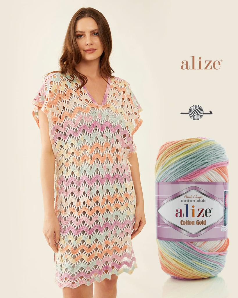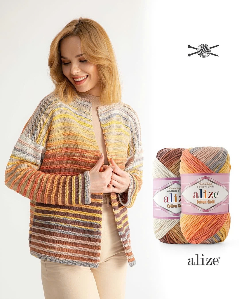Len cotton mùa hè Cotton Gold Batik mềm mại, dễ dàng đan móc. Len thích hợp cho các dự án đan móc mùa hè như đan móc nón, áo khoác, áo ghi lê, khăn, móc thú, thảm, chăn,... Đây là dòng len đa di năng và là sản phẩm nổi tiếng của hãng Alize Yarn. Bảng màu phối hợp từ các màu sắc riêng biệt nhưng lại mang đến sự hài hòa không tưởng, chắc chắn lên thành phẩm bạn sẽ mê ngay.
