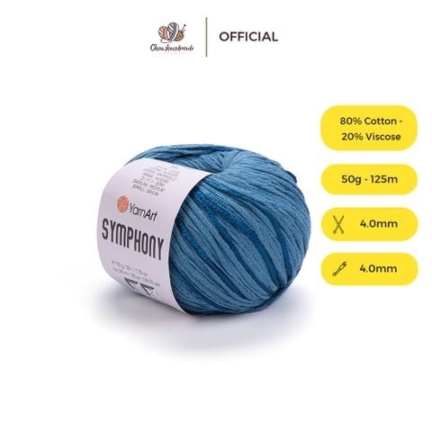 Symphony sẽ là một trong những loại sợi mùa hè cực kỳ yêu thích nhờ hàm lượng cotton cao và hình dáng sợi len cực kỳ đặc biệt bởi các đan xen đoạn len bóng siêu lạ. Mặc dù đoạn len xoắn sáng bóng của Symphony tạo ra hiệu ứng ba chiều trên sản phẩm của bạn nhưng độ mềm mại của nó thì luôn ăn điểm hoàn toàn. Symphony là loại sợi nhẹ, thích hợp cho cả đan và móc. Bạn có thể ưa chuộng Symphony, có bảng màu rộng, được ứng dụng trong các dự án đan móc áo, váy, khăn choàng, túi xách, nón,…