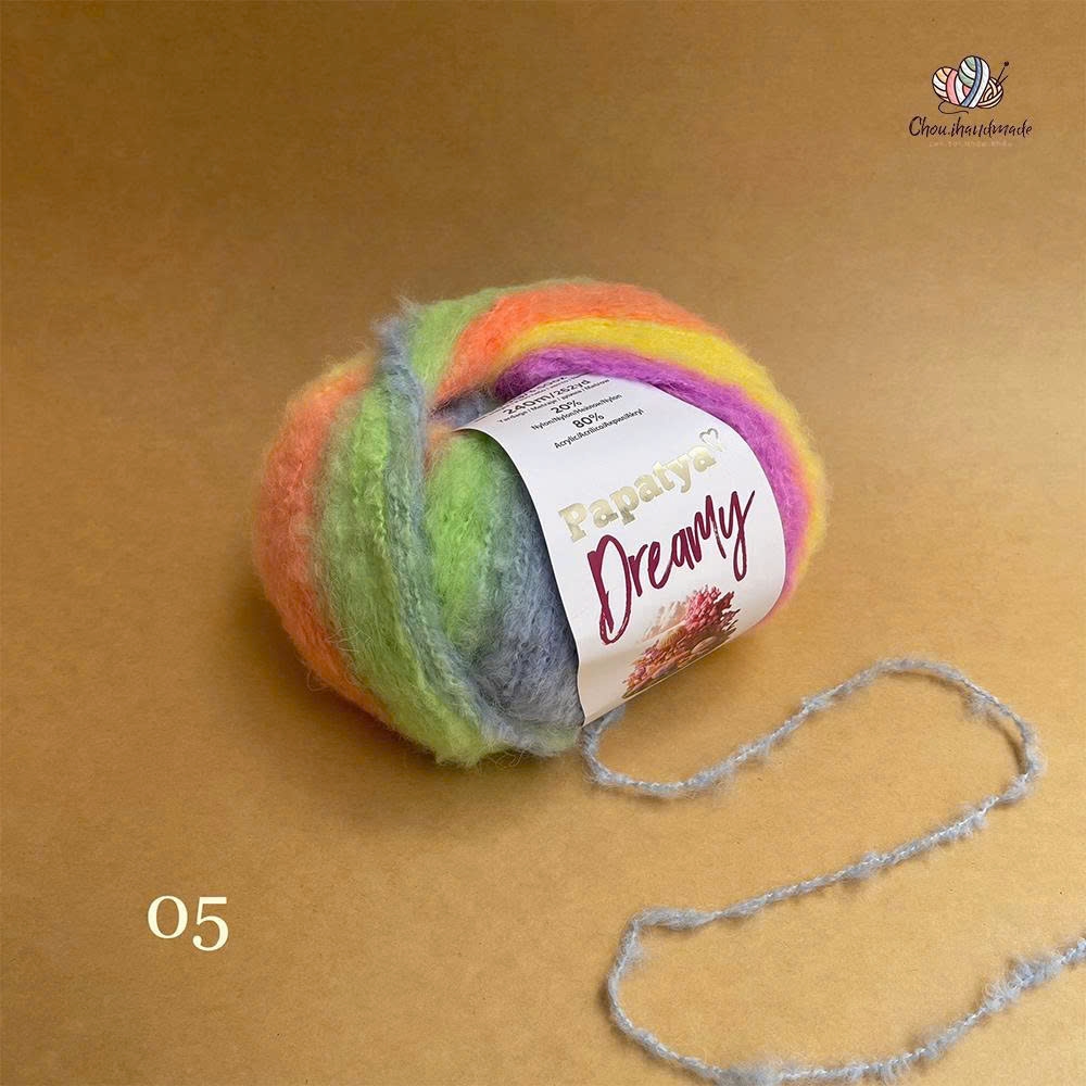 Dreamy kết hợp nylon và acrylic trông như lông mohair để tạo nên những bộ trang phục nhẹ nhàng, bồng bềnh, xốp và nhẹ như mây. Kết cấu độc đáo này mang đến vẻ ngoài mềm mại, tựa như mây cho các dự án. Loại len này là lựa chọn lý tưởng cho những dự án độc đáo, ấn tượng nhưng vẫn tiện dụng và ấm áp.