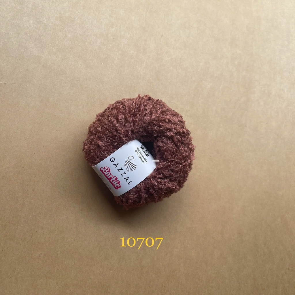 Len lông xù Barbie là dòng len lông ngắn, mềm mại, mịn, mượt mà, sợi lông mềm, không thô ráp. Với dòng lông xù này, bạn có thể ứng dụng trong đan móc áo, váy, móc thú bông, túi xách, đồ dùng nội thất,...