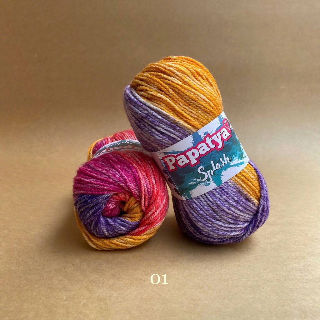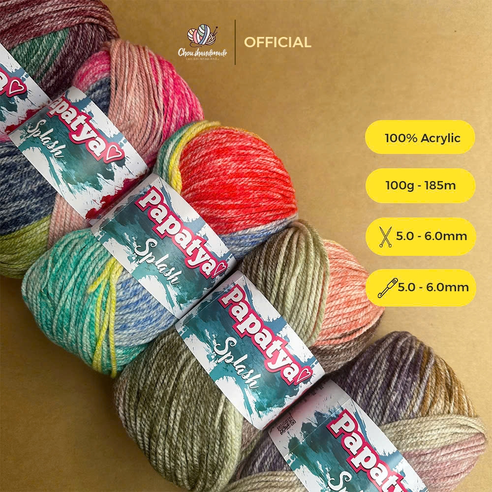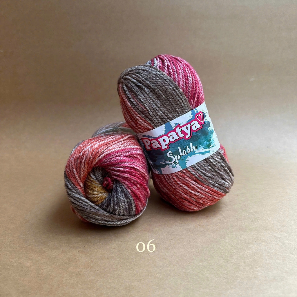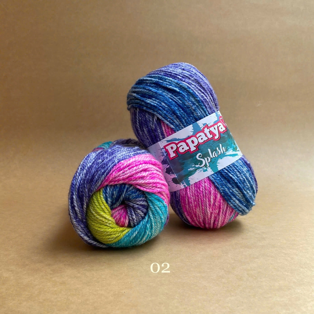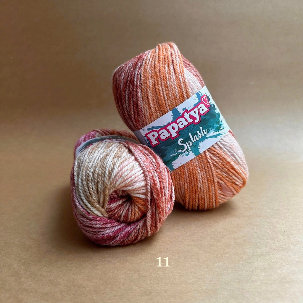 Bộ sưu tập màu sắc tuyệt vời của len Splash tạo ra những sọc stonewashed tuyệt đẹp trên sản phẩm đan của bạn. Được làm từ 100% acrylic siêu mềm. Với dòng Papatya Splash, nếu bạn mong muốn phối màu trơn thì có thể xem thử dòng Papatya Super Stitch với cùng chất liệu và cỡ sợi. Len Papatya Splash, bạn có thể ứng dụng trong đan móc áo, váy, khăn, nón,...