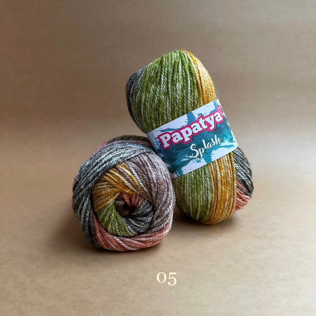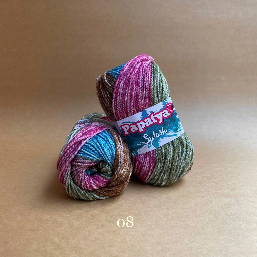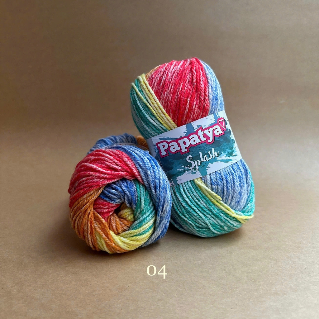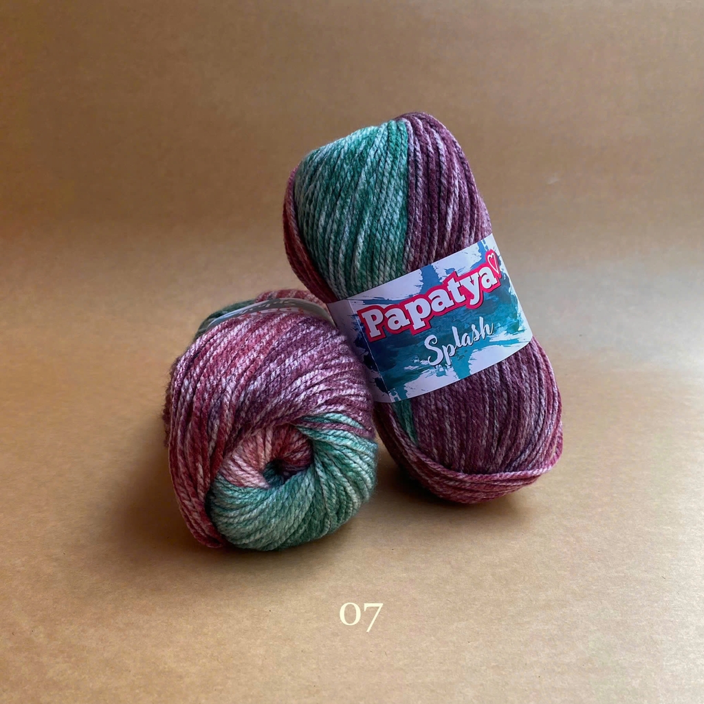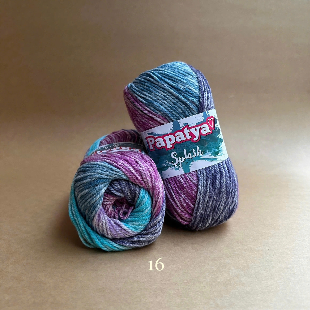 Bộ sưu tập màu sắc tuyệt vời của len Splash tạo ra những sọc stonewashed tuyệt đẹp trên sản phẩm đan của bạn. Được làm từ 100% acrylic siêu mềm. Với dòng Papatya Splash, nếu bạn mong muốn phối màu trơn thì có thể xem thử dòng Papatya Super Stitch với cùng chất liệu và cỡ sợi. Len Papatya Splash, bạn có thể ứng dụng trong đan móc áo, váy, khăn, nón,...