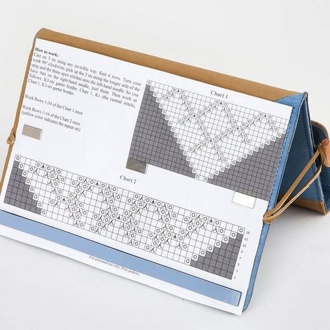 A set of 11 interchangeable Tunisian crochet hooks with 4 cables, packaged in a multi-use case which functions as a chart holder as well.