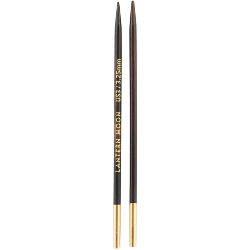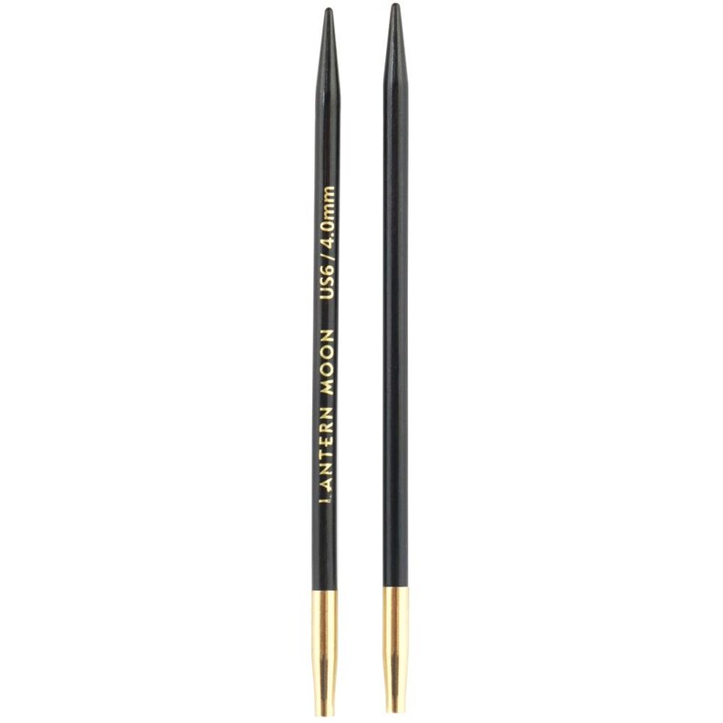 Kim đan rời nằm trong bộ sưu tập Lantern Moon được làm bằng gỗ mun Ebony, một trong những vật liệu có giá trị nhất thế giới. Kim được phủ thêm lớp lụa mỏng cùng đầu nối bằng đồng mạ 24K đảm bảo kim đan không bị đứt. Đầu kim được mài nhẵn và có hình dạng phù hợp với tất cả các loại sợi. Với dòng kim đan rời, bạn có thể kinh hoạt hơn trong việc thay đổi kim khi đan áo để tạo nên thành phẩm tuyệt vời.
