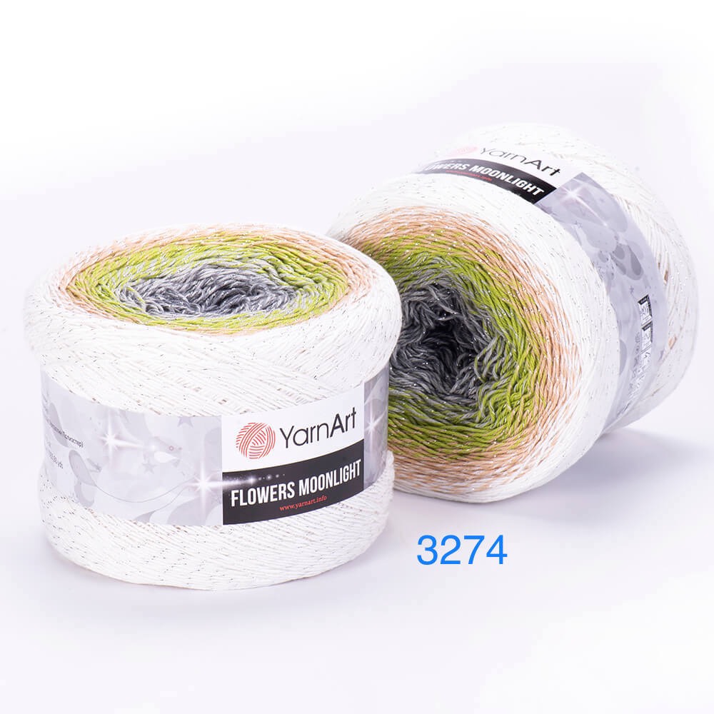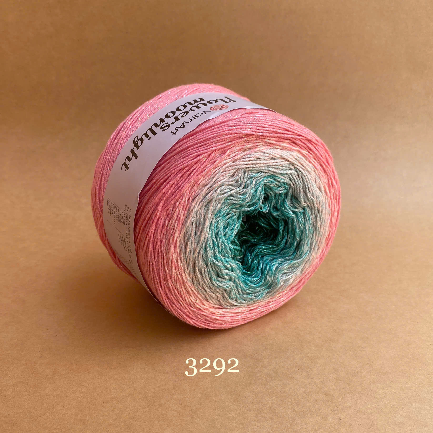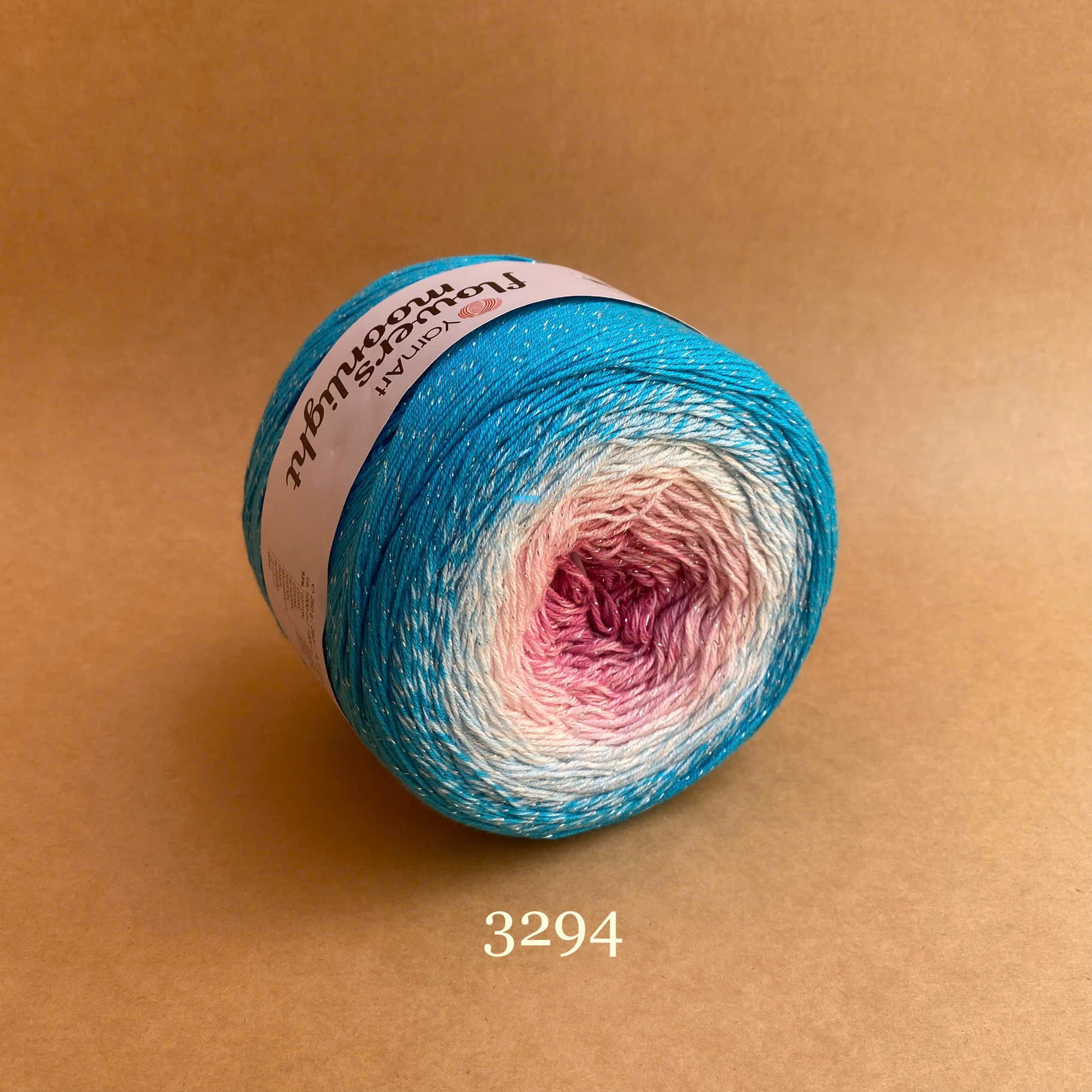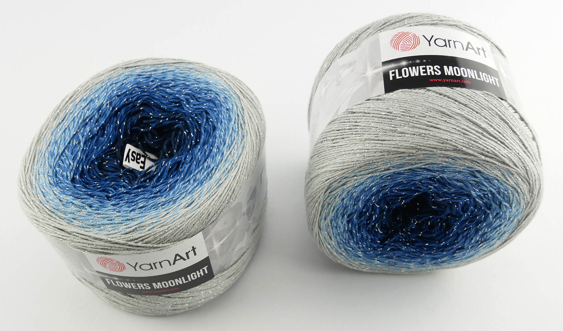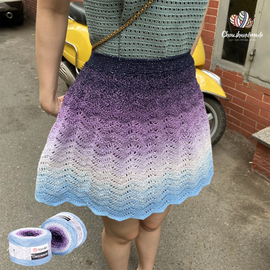 Len YarnArt Flower Moonlight thích hợp đan/móc áo, váy hè, khăn tam giác, áo khoác…. 1 cuộn dài 1000 mét đủ móc 1 áo đơn giản hoặc 1 khăn tam giác, váy dài hoặc có tay thì 2 cuộn mới đủ nhé.