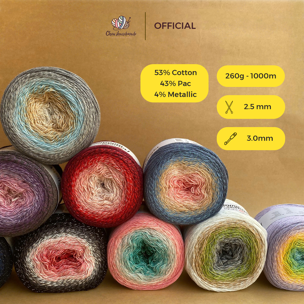 Flowers Moonlight là sự kết hợp giữa cotton và acrylic chất lượng cao với khả năng chuyển màu mượt mà, hoàn hảo cho các dự án đan và móc như khăn choàng, áo len và đồ dùng cho trẻ em. Lurex kim loại lấp lánh – Được pha trộn với các sợi kim loại mỏng manh, loại sợi này tạo thêm sự lấp lánh tinh tế cho các tác phẩm thủ công của bạn, khiến chúng trở nên thanh lịch và bắt mắt. Sắc thái nhiều màu rực rỡ – Với thiết kế chuyển màu tuyệt đẹp, loại sợi này tạo ra sự chuyển màu liền mạch, lý tưởng cho các dự án độc đáo và nghệ thuật.