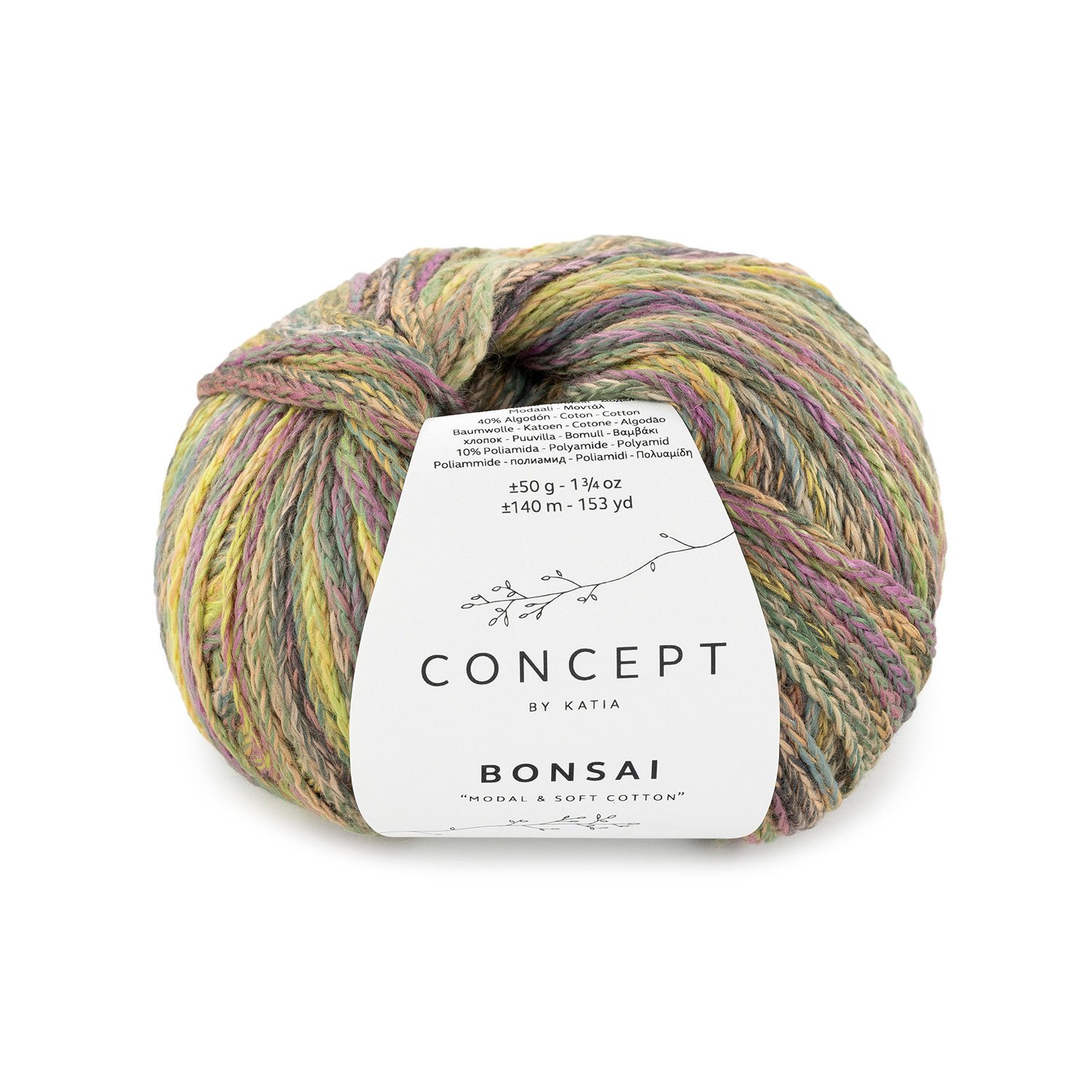 Sợi Katia Bonsai là một loại sợi độc đáo thuộc dòng Concept by Katia, nổi bật với sự kết hợp của sợi tự nhiên khi có Modal kết hợp cùng Cotton và cấu trúc sợi đặc biệt, phù hợp để đan móc quanh năm. Sự pha trộn của ba thành phần giúp chất sợi mềm mại, ấm áp nhưng vẫn thoáng khí. Modal là một loại sợi rayon/viscose được làm từ gỗ sồi, nổi tiếng với độ mềm mại đặc trưng, gần giống lụa. Điều này làm cho thành phẩm cực kỳ mềm mại và dịu nhẹ với da. Với cấu trúc sợi đặc biệt giúp tạo sự thanh lịch, tạo độ nhẹ và phồng. Với bảng màu lạ mắt thì thành phẩm đan móc của bạn sẽ rực rỡ, độc đáo với hiệu ứng loang màu, tạo nên sự vui tươi và tươi mới.