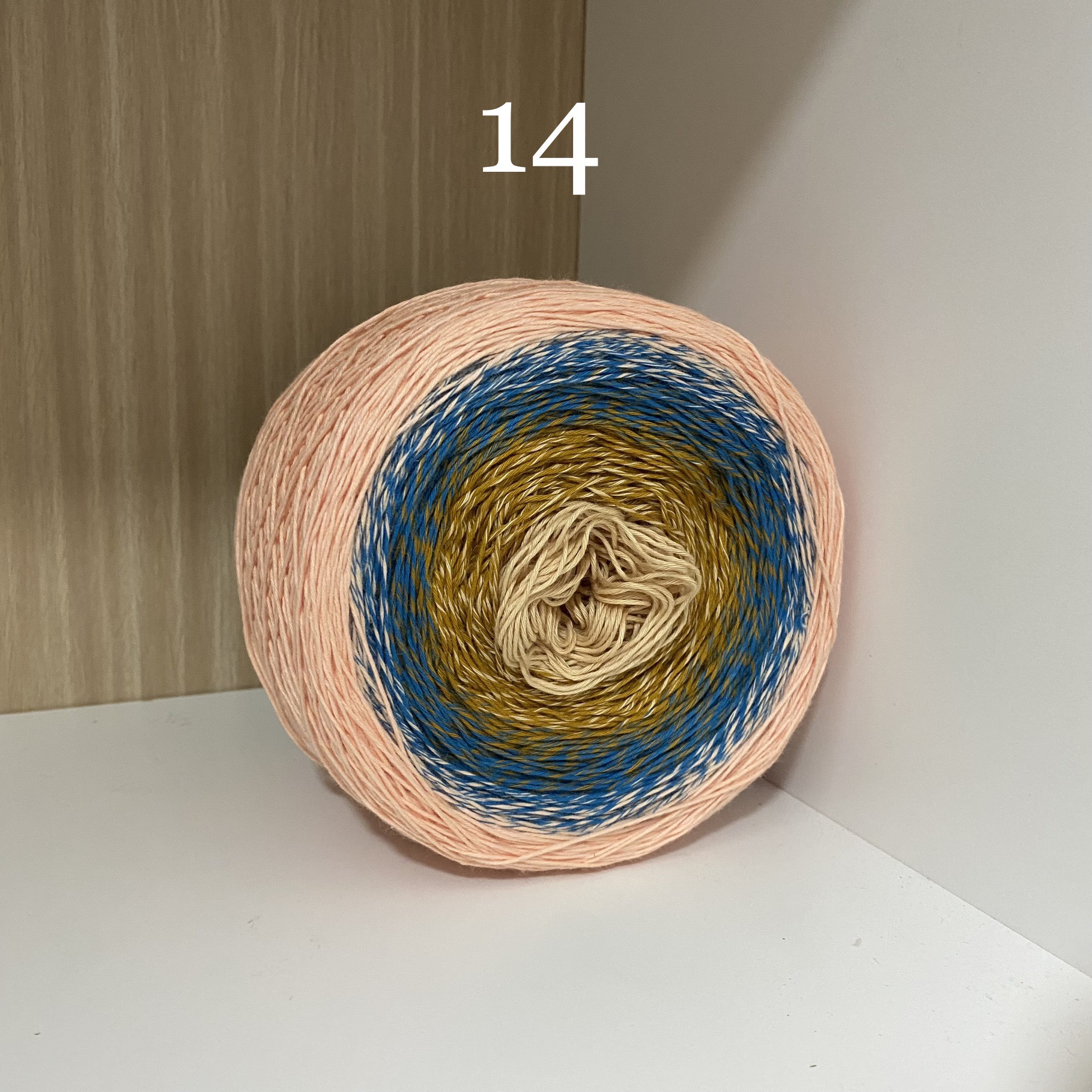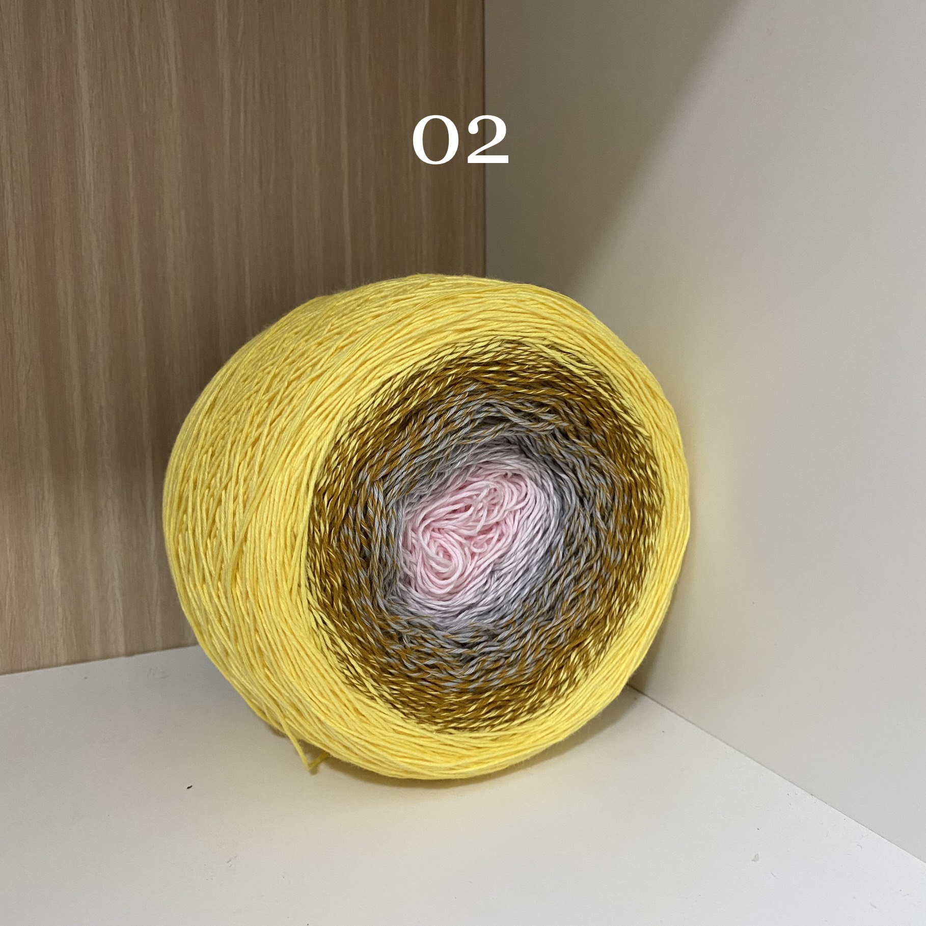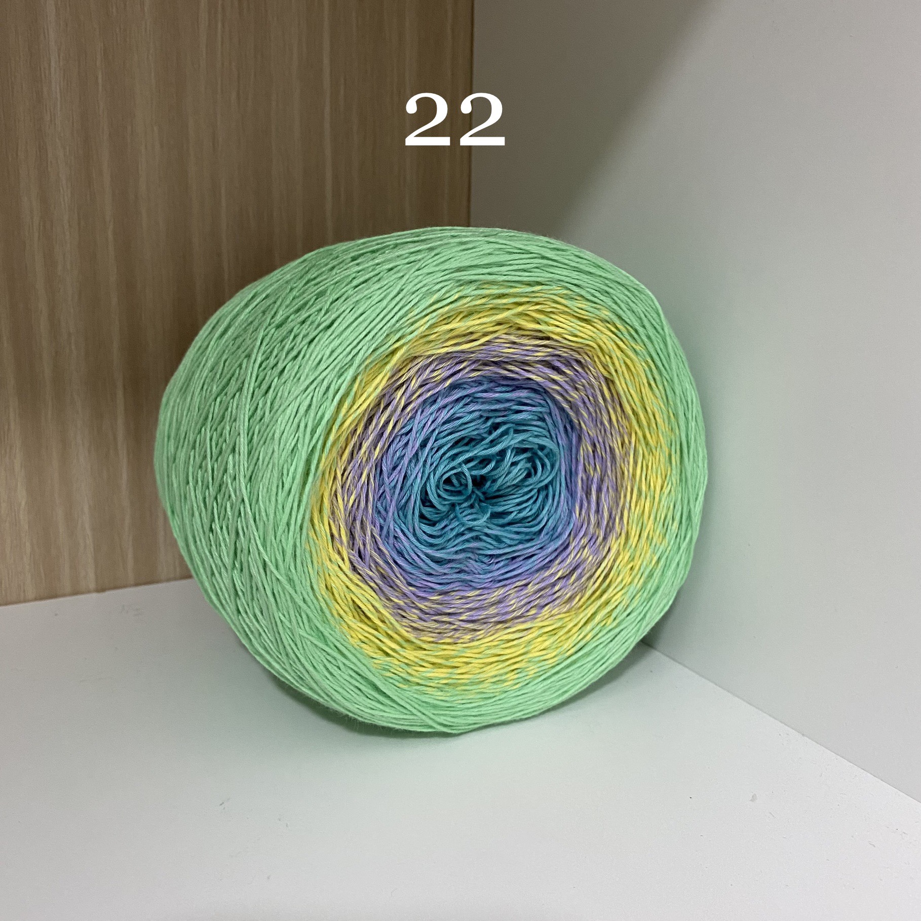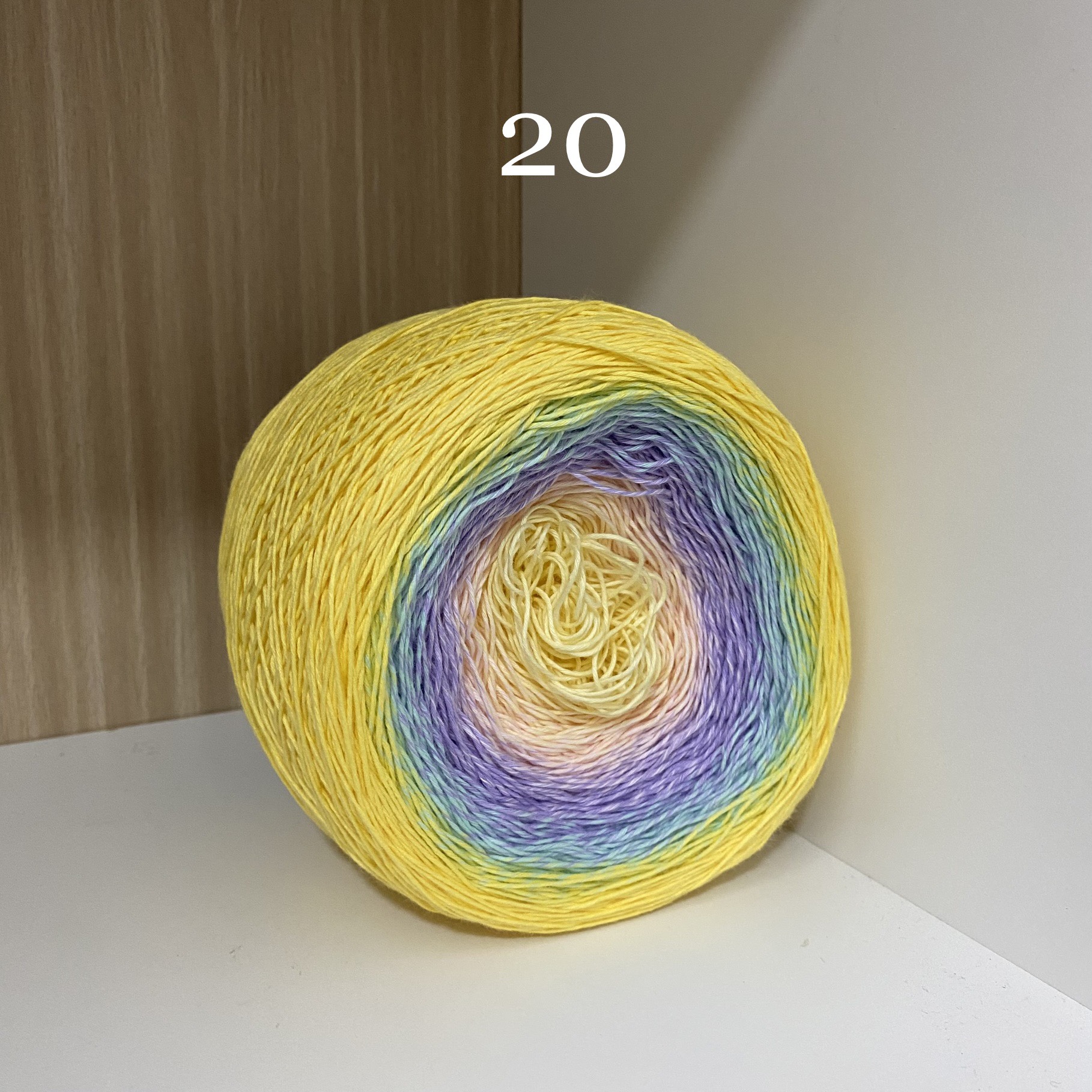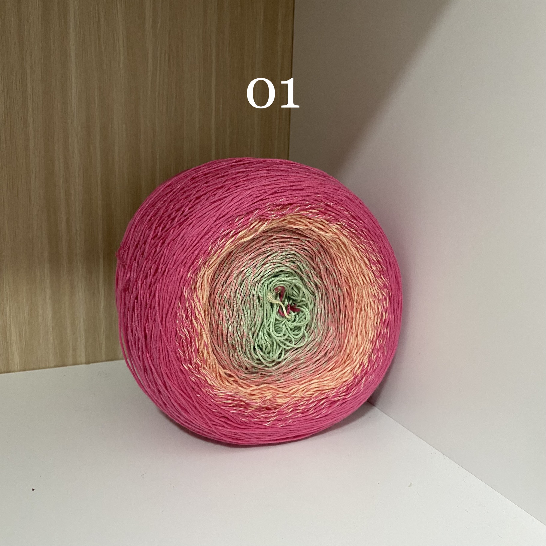 Sợi Cotton là dòng sợi se với 100% Cotton mát mềm. Sợi phù hợp cho các dự án đan móc áo, váy khăn. Ứng dụng trong thời trang đi chơi, đi làm đều được. Ngoài ra, điểm cộng lớn nhất là sở hữu bảng màu cầu vồng tươi mát, trẻ trung, dễ dàng để phối đồ với các màu trơn khác.