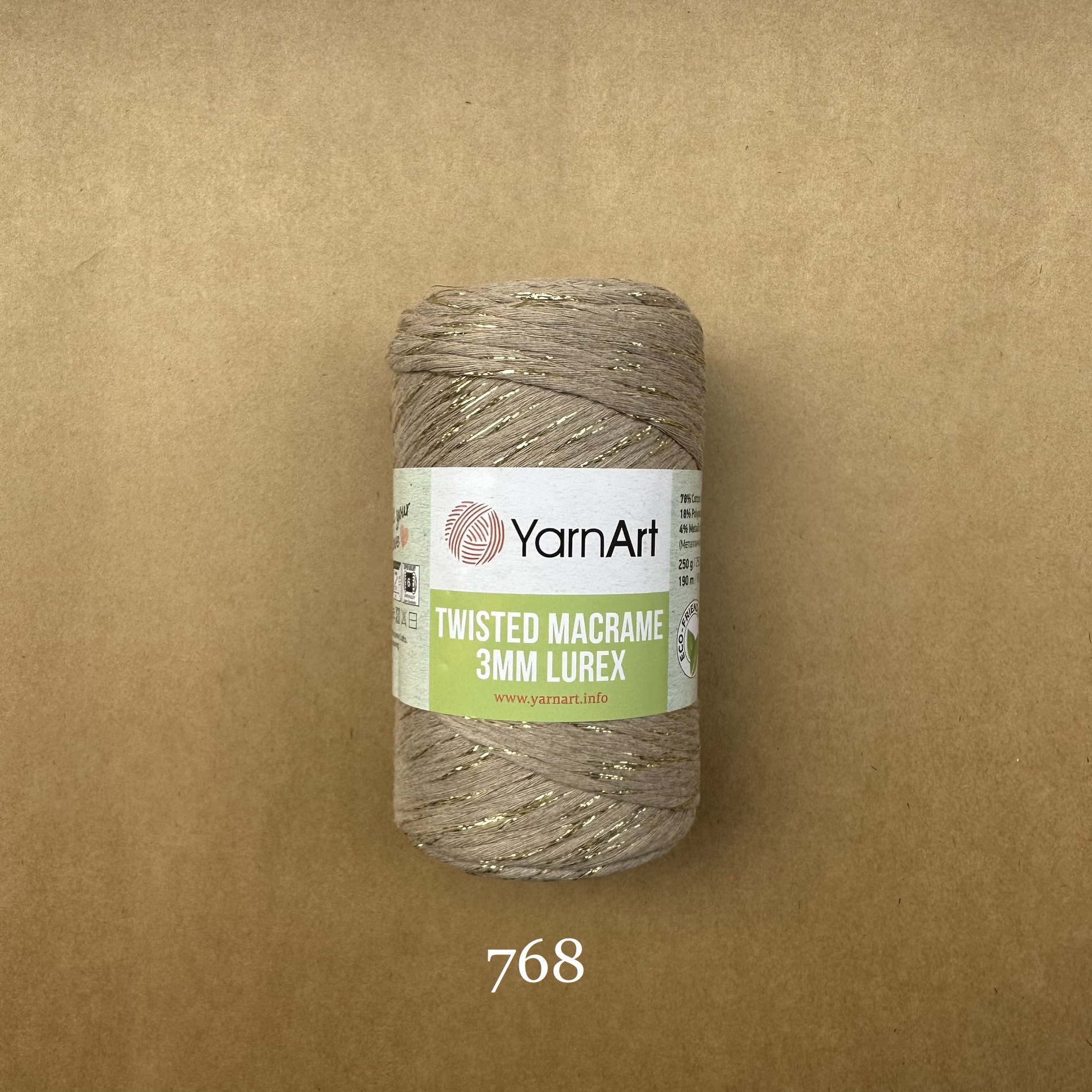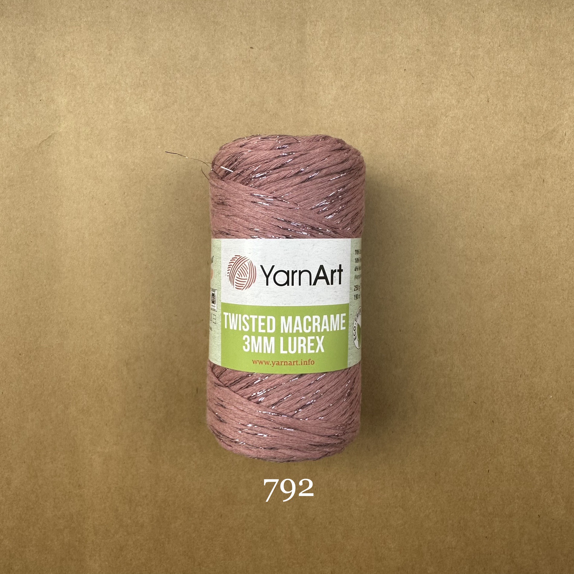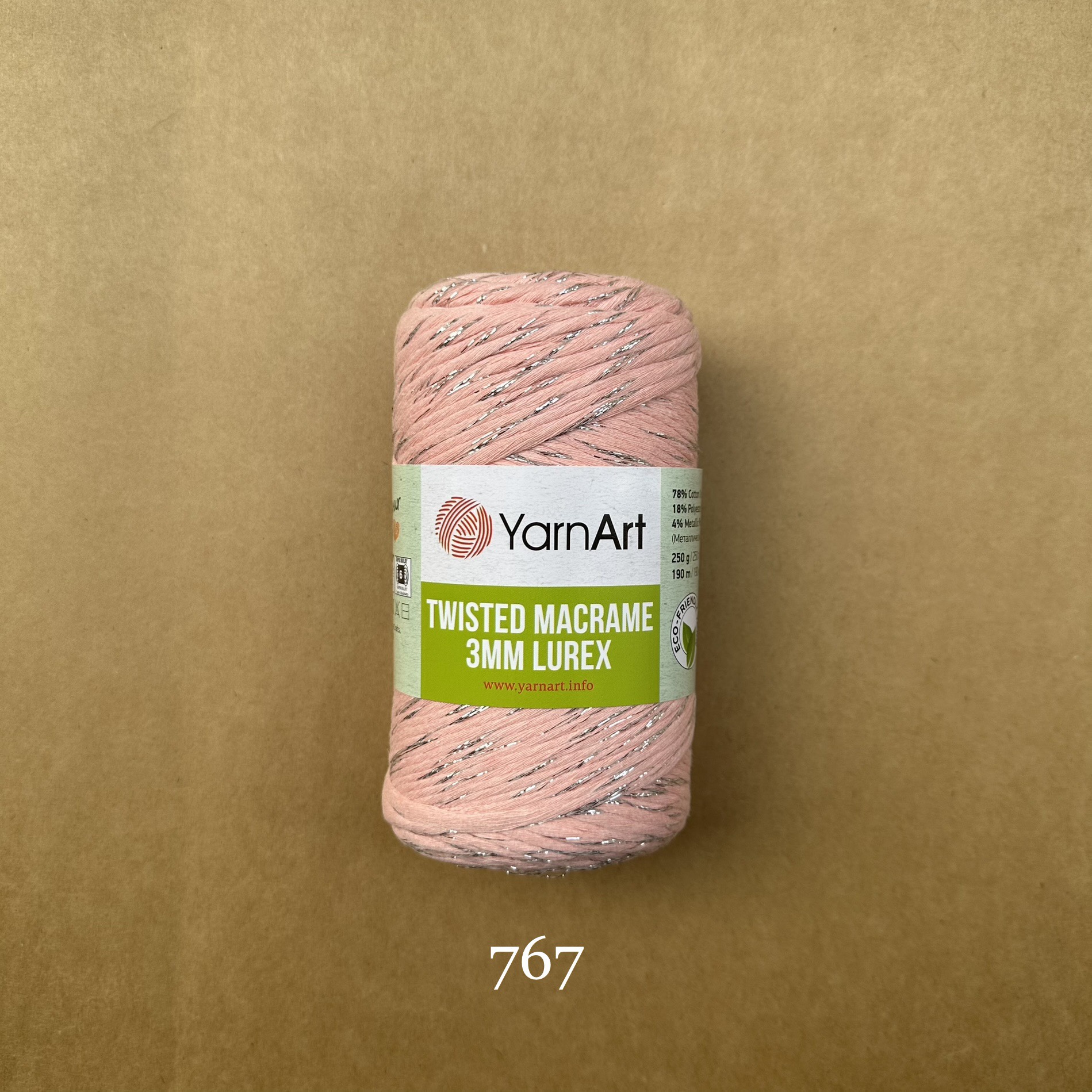 YarnArt Twisted Macrame 3 MM Lurex chất liệu mát, bền chắc. Với bảng màu trơn kết hợp dây kim tuyến, điều này là cho thành phẩm của bạn thêm phần sang trọng và đặc sắc hơn. Bảng màu đa dạng sẽ giúp bạn dễ dàng tìm kiếm cuộn sợi phù hợp cho dự án đan móc sắp tới.