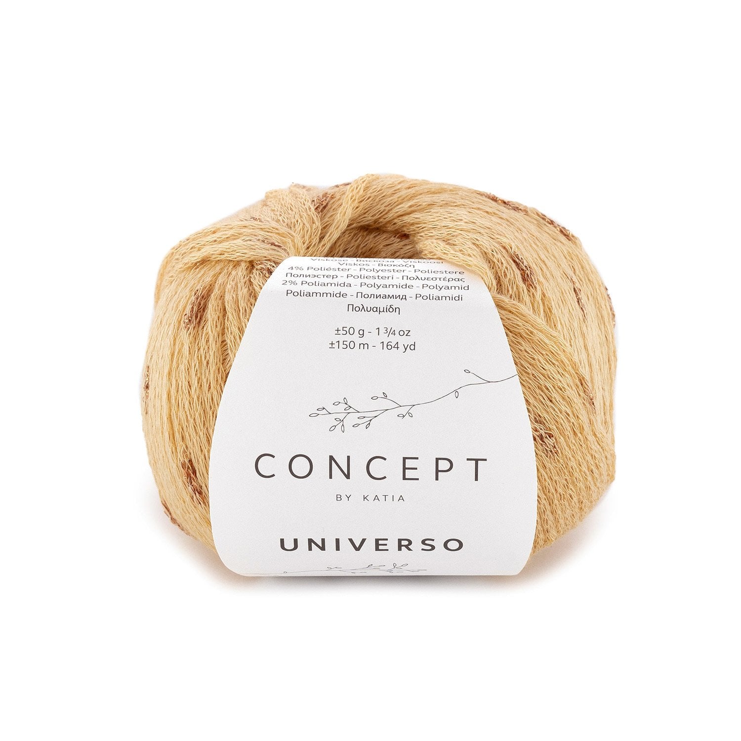 Sợi Universo kết hợp sự mềm mại và độ rũ mượt của visco với những đoạn ánh kim lấp lánh tinh tế. Hàm lượng Viscose cao giúp sợi có thành phẩm cực kỳ mềm mại và nhẹ, tạo cảm giác thoải mái khi mặc. Sợi có độ rủ tốt, thích hợp cho các mẫu áo có họa tiết, khăn choàng, hoặc váy mùa hè. Những đoạn ánh kim giúp tạo ra hiệu ứng lấp lánh nhẹ nhàng, tinh tế, thêm vẻ thanh lịch và sang trọng cho thành phẩm. Sợi Universo vẫn có độ phồng nhất định, tạo nên kết cấu thoáng và mở, lý tưởng cho trang phục mùa hè.