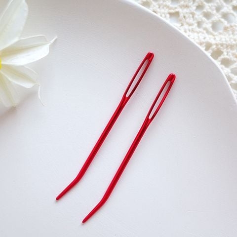 Set 2 kim khâu len kim loại có mũi cong ở đầu kim, thuận tiện sử dụng. Cỡ thân kim to và đầu luồng len to, thuận tiện sử dụng cho các dòng len và sợi có kích cỡ to từ 1.0mm trở lên.