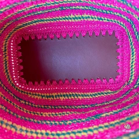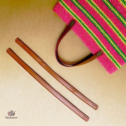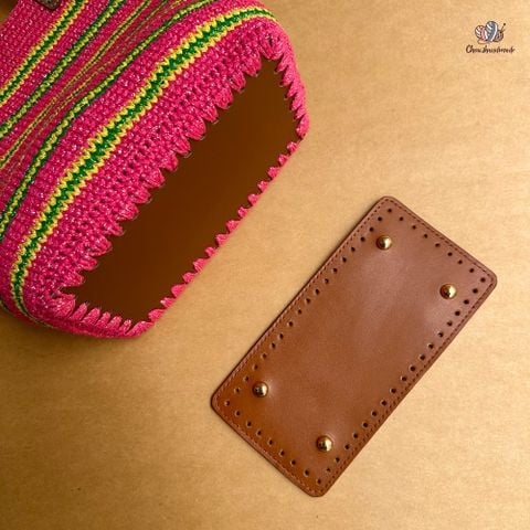 Quai đeo túi và đế được làm từ da. Với đế chắc chắn có đục lỗ để bạn có thể dễ dàng móc sợi và có chân đế giảm việc đế túi của bạn bị trầy sước hoặc tổn hại trong quá trình sử dụng. Quai đeo túi có sẵn lỗ nhỏ để bạn dễ dàng móc sợi, mép quai được hàn sẵn tránh việc trầy xước phần mép quai.