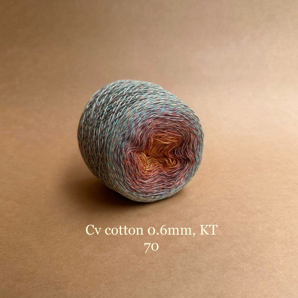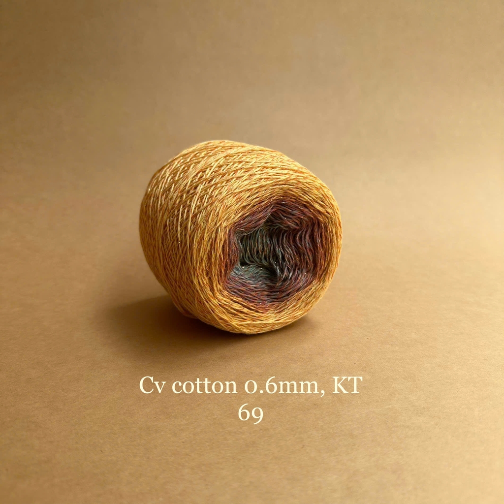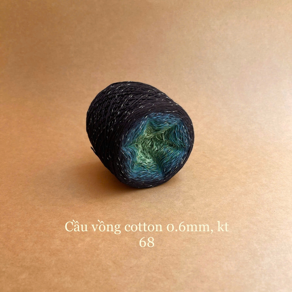 Với dòng sợi cotton 0.6mm, kim tuyến, bạn có thể ứng dụng cho các dự án đan móc áo, áo dài, váy, khăn,...