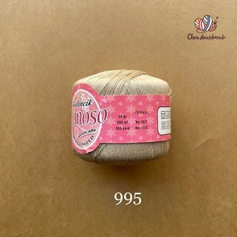 - Cỡ sợi: len sợi nhỏ, chập 2 thành cỡ sợi 1mm