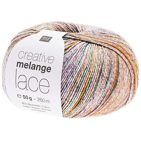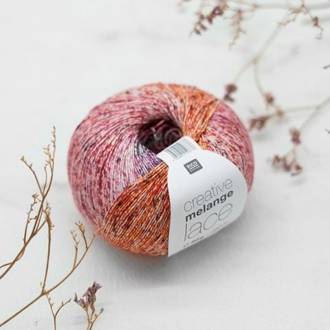 Creative Melange Lace có cấu trúc mềm mại, màu sắc độc lạ, tinh tế, chắc chắn bạn sẽ có một thành phẩm cực đẹp từ loại sợi này. Hoàn hảo cho mùa hè!. Sợi được ứng dụng trong đan móc khăn choàng, áo, váy,...