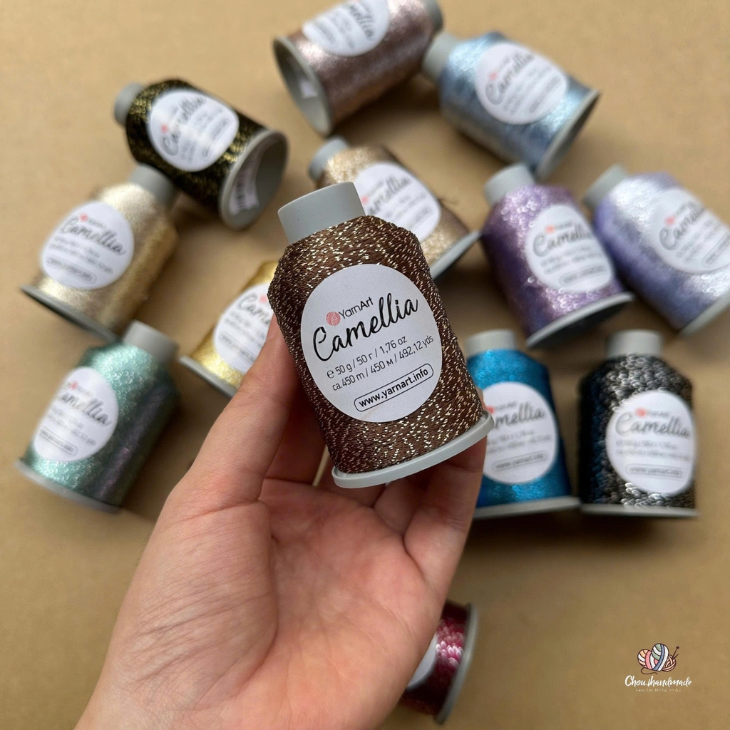 Sợi kim tuyến Camellia New - Yarnart, 50g - 450m, dùng để chập phối, đan móc áo, khăn, nón