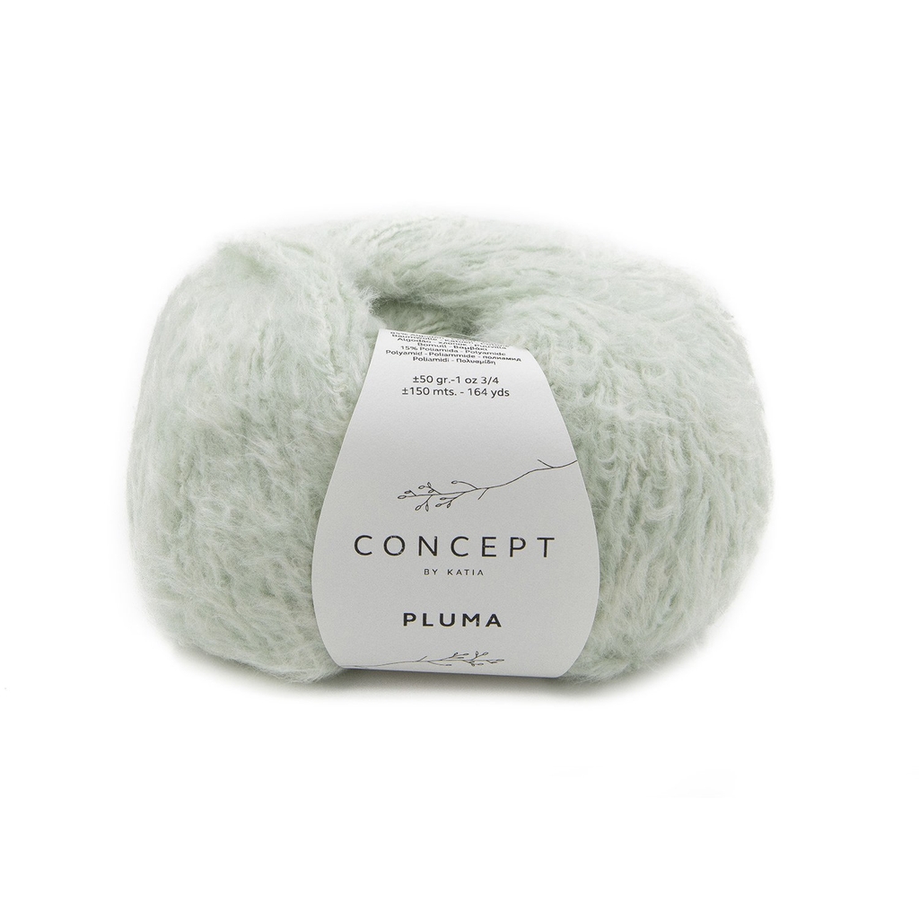 Sợi có thành phần 85% Cotton và 15% Polyamide, là một sản phẩm rất thú vị và độc đáo trong dòng Concept by Katia, đặc trưng bởi hiệu ứng bề mặt và cảm giác tay đặc biệt. Pluma là sợi Cotton tạo ra hiệu ứng lông tơ mềm mại và cảm giác tay mềm mại, xốp nhẹ. Nhờ thành phần chính là Cotton, sợi Pluma vẫn giữ được sự thoáng mát và thân thiện với da của Cotton, nhưng lại có vẻ ngoài ấm áp, bồng bềnh của len. Điều này làm cho nó trở thành lựa chọn tuyệt vời cho trang phục có hiệu ứng xù lông nhưng có thể mặc vào mùa hè hoặc mùa chuyển mùa.
