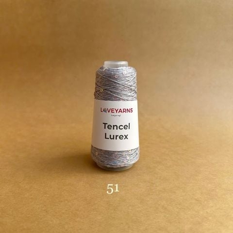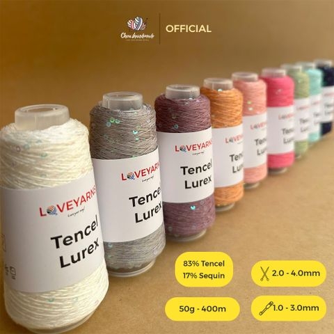 Sợi Tencel Lurex lấp lánh giúp cho thành phẩm đan móc của bạn thêm phần rực rỡ. Với chất sợi 83% Tencel, sợi bền chắc, mềm mịn, thấm hút mồ hôi tốt, là một lựa chọn an toàn cho các bạn có làn da nhạy cảm.