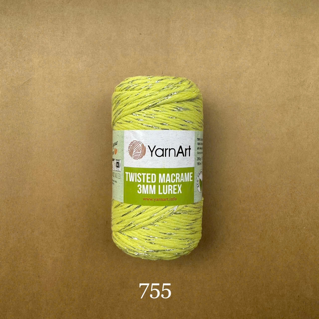 YarnArt Twisted Macrame 3 MM Lurex chất liệu mát, bền chắc. Với bảng màu trơn kết hợp dây kim tuyến, điều này là cho thành phẩm của bạn thêm phần sang trọng và đặc sắc hơn. Bảng màu đa dạng sẽ giúp bạn dễ dàng tìm kiếm cuộn sợi phù hợp cho dự án đan móc sắp tới.