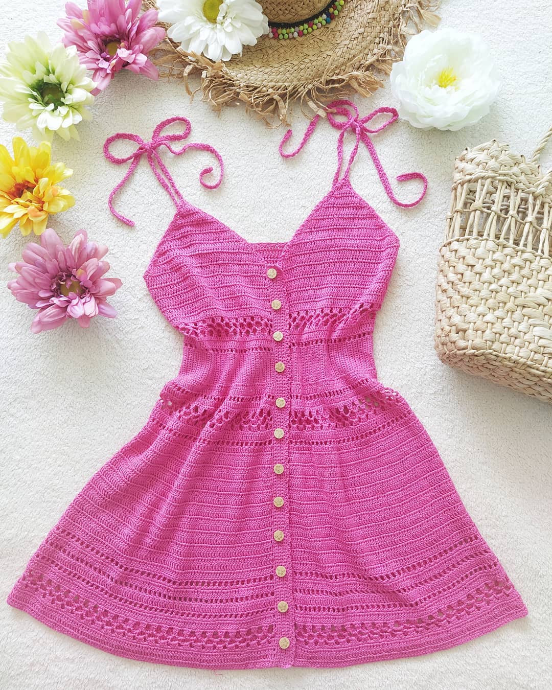Sợi Lino ứng dụng trong đan móc đầm, áo, đế lót ly, họa tiết.