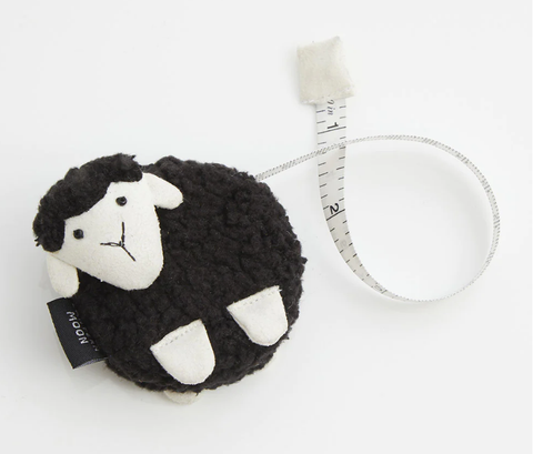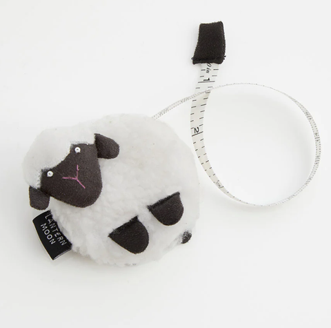 These whimsical merino sheep tape measures come in a variety of natural colors. Metric and English measurements are shown on opposite sides of a 5’ long retractable measure.